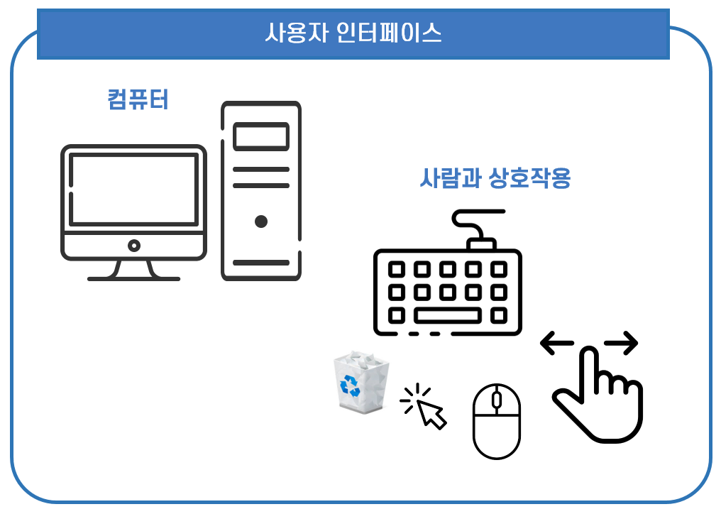 사람과 컴퓨터간의 상호 작용 방법을 의미하는 사용자 인터페이스는