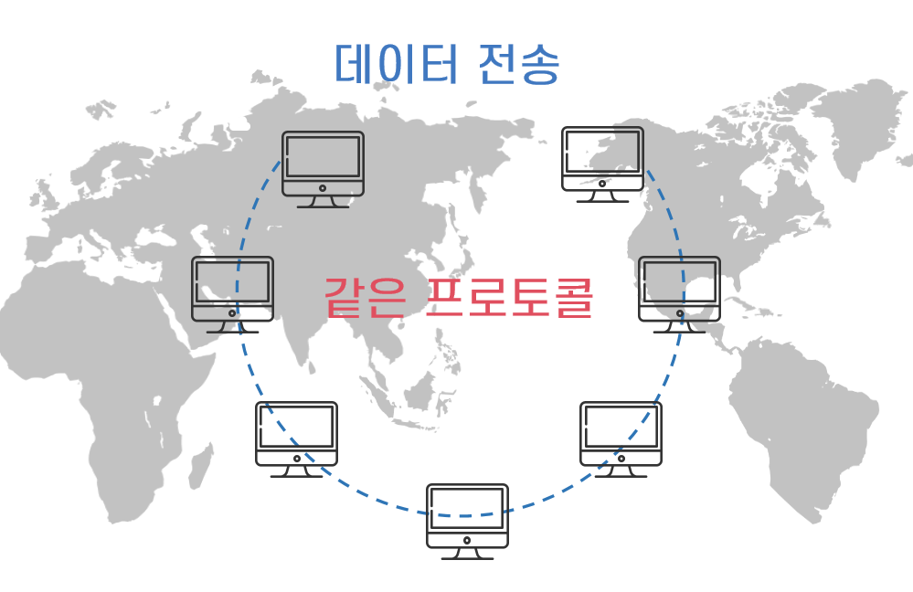 서로 다른 수많은 컴퓨터들이 인터넷이라는 공간에서 원활하게 데이터를 주고받을 수 있는 것은, 같은 프로토콜을 사용하고 있기 때문입니다.