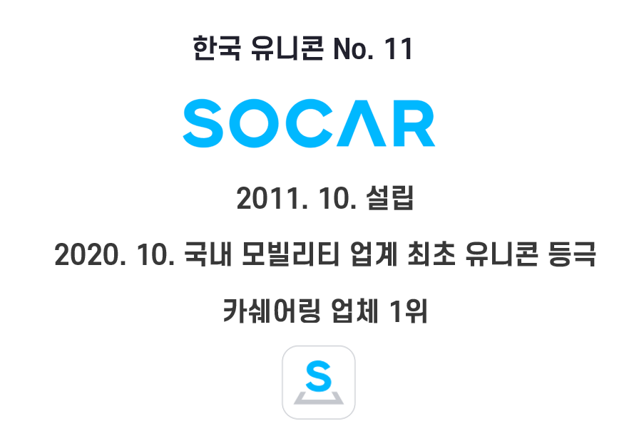 쏘카는 2020년 10월에 새로운 유니콘 기업으로 등극했습니다.