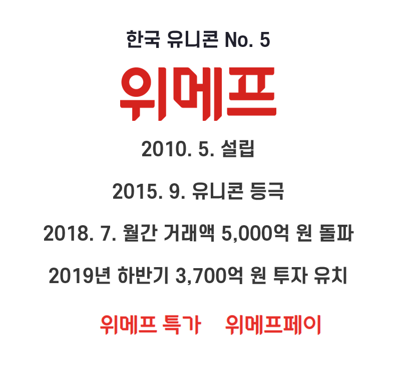 허민 창업주의 투자자금을 바탕으로 박은상 대표는 블랙 타임 딜, 블랙 프라이스 데이 등 대규모 프로모션을 진행하면서 위메프를 소셜 커머스 업계 3강에 안착시켰습니다. 2013년에는 업계 1위에 오르는 등 지속적인 성장세를 보인 위메프는 2015년 9월에 1,000억 원의 투자를 유치하면서 유니콘 기업에 등극하게 됩니다.