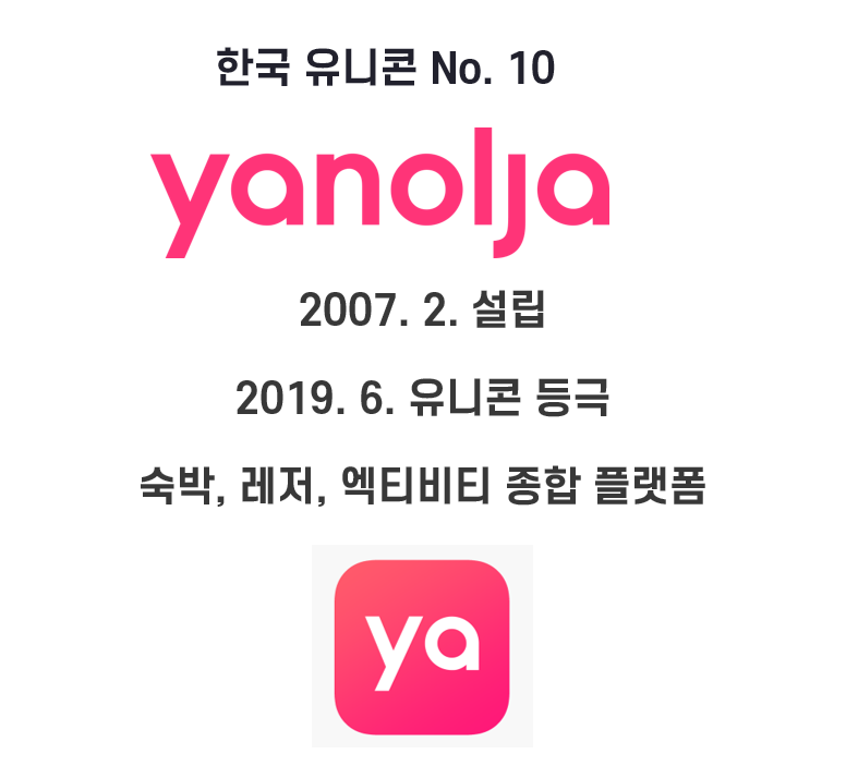 숙박 예약 앱으로 유명한 야놀자(yanolja)는 2007년 2월, 모텔 청소일을 하면서 숙박 업계와 인연을 맺은 이수진 대표가 창업한 회사입니다. 모텔 예약 서비스에서 출발한 야놀자는 호텔, 펜션 등으로 서비스를 확장해 종합 숙박 예약 플랫폼으로 성장했고, 놀이문화를 선도하겠다는 비전으로 레저, 액티비티 관련 회사를 인수하며 종합 액티비티 플랫폼으로 진화하고 있습니다.
